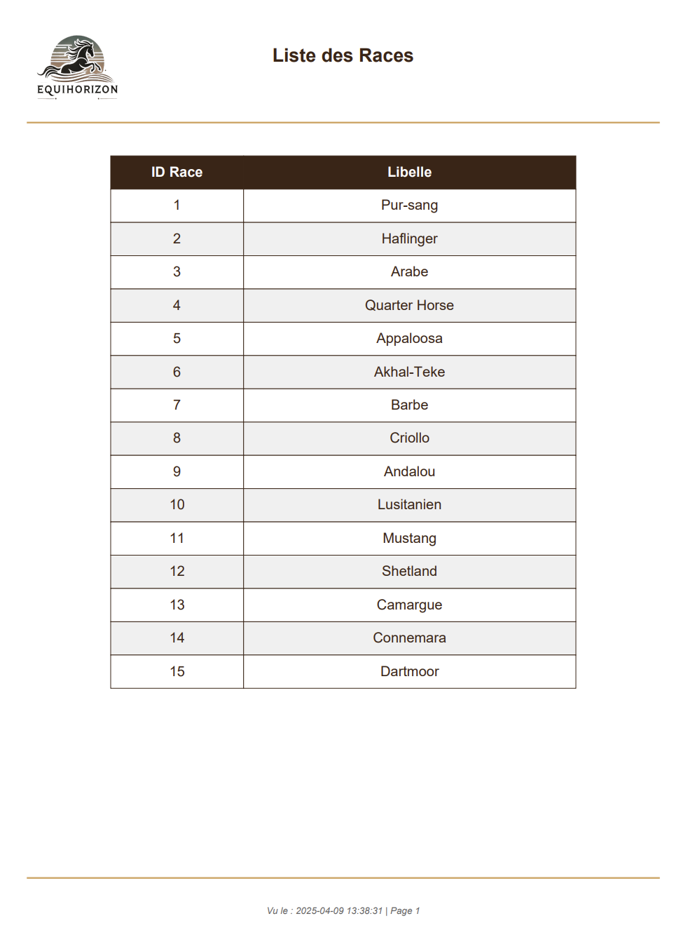🔎 Gestion des races de chevaux (CRUD avec PDF export)