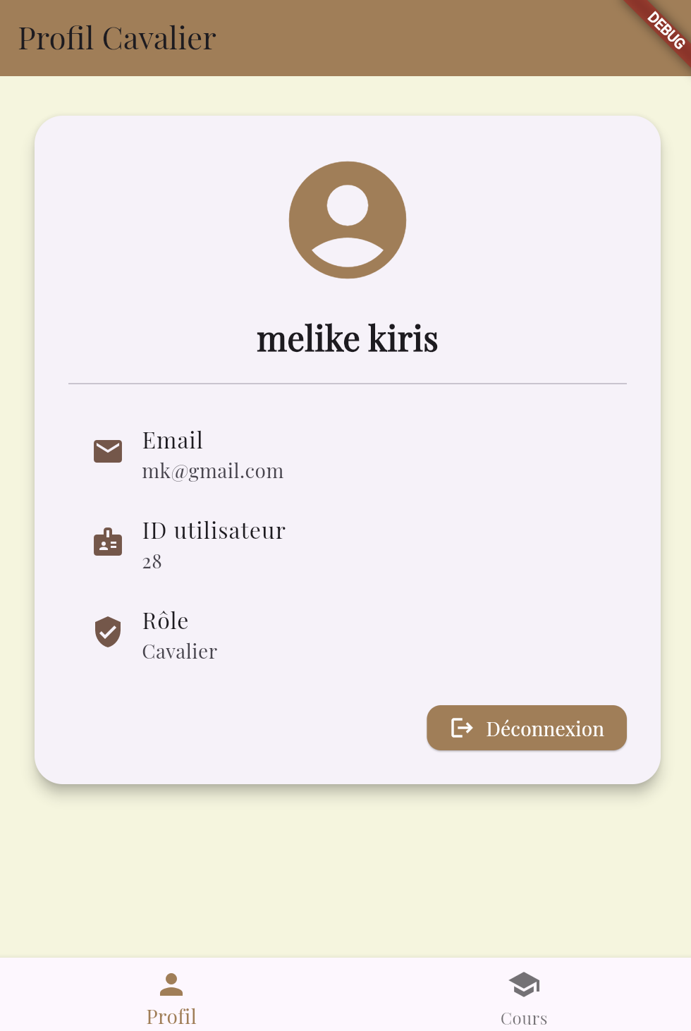 👤 Gestion du profil cavalier (email, ID, rôle)